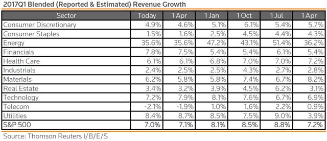 Jak se vyvíjejí odhady růstu či poklesu tržeb za 1Q2017?