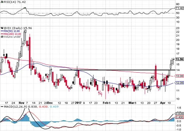 Index volatility VIX posílil, je nad 14 a zformoval růstový trend. Pro akcie nyní vysílá negativní signál. Uvidíme, zda časem stanoví nové dlouhodobé rozpětí.