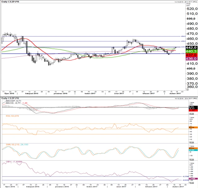 ČEZ, Komerční banka a MONETA Money Bank: České blue chips pohledem technické analýzy (17. 4. 2017)