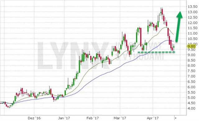 Vstup se nabízí nad maximem z posledních dnů na 10,20 USD. Stop-loss pokládáme pod poslední minimum a vzhledem k vyššímu riziku pozici otevíráme s polovičním objemem. Míříme na zisk na 12,50 USD.