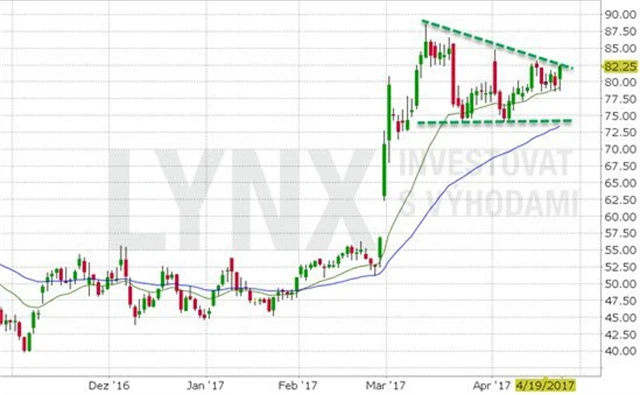 V případě posunu nad pásmo předpokládáme další prudký nárůst o zhruba 30 %. Do nákupní pozice budeme vstupovat při proražení maxima z posledního týdne, stop-loss pokládáme pod minimum z uplynulého týdne. Cílíme až na hladinu 110 USD.