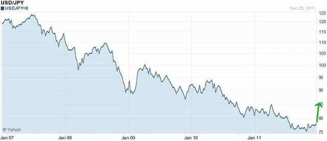 Americký dolar posílí vůči japonskému jenu až o 30 %. Americká ekonomika totiž může překvapit svým růstem, což může posílit zisky amerického dolaru na úkor jenu. Měnový pár USDJPY se tak může po třech letech znovu dostat nad úroveň 100 jenů za jeden americký dolar.