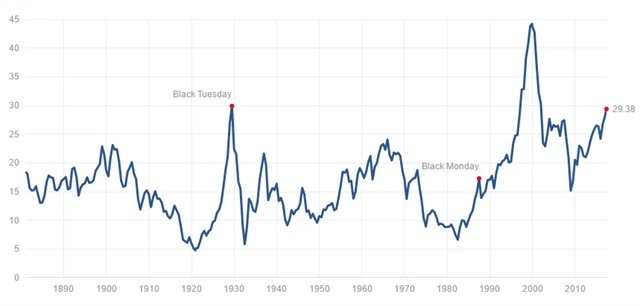 Stačí se podívat na to, co se na Wall Street odehrávalo v 20. a 90. letech 20. století a později v roce 2008. A co se možná opět děje právě teď. Shillerovo P/E amerického akciového indexu S&P 500 je aktuálně při vyloučení období 90. let nejvýše od roku 1929 a v rámci všech zahrnutých titulů je medián ocenění nejvyšší v historii.