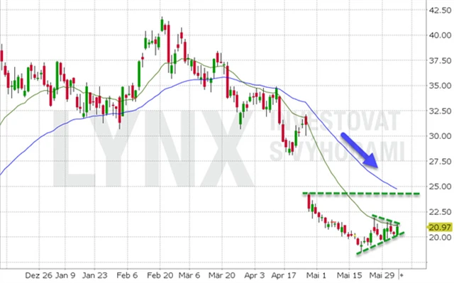 Akcie na to zareagovaly oslabením. V dubnu se cena propadla a zastavila se až pod 20 USD. Aktuálně se titul obchoduje v úzkém pásmu a čeká na impulz. Příznivým znamením je to, že cena v posledních dnech neklesá, spíše mírně roste. Může tedy být na dlouhodobějším dně.