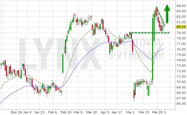 Z pohledu technické analýzy je zajímavým bodem pro vstup odraz od původní hladiny odporu na ceně okolo 79 USD. Prorazí-li trh horní hranu sestupné konsolidace, vstupujeme do nákupní pozice a spekulujeme na další zažehnutí momenta a prudký vzestup až k 93 USD. Stop-loss pokládáme pod minimum z posledního týdne 79 USD.