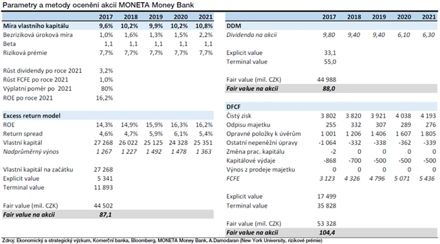 Na základě aktualizace svého modelu potvrdila Komerční banka doporučení na akcie Monety Money Bank na stupni "koupit", ovšem s vyšší cílovou cenou, konkrétně 95 Kč na akcii.