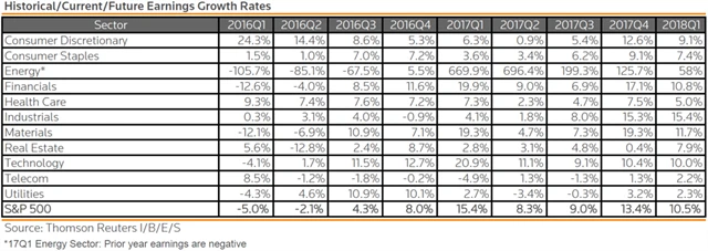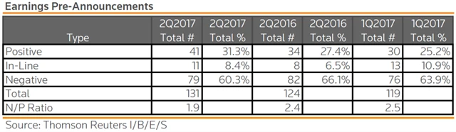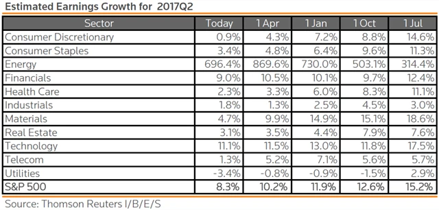 Jak se vyvíjejí odhady růstu či poklesu zisků za 2Q2017?