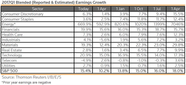 Jak se vyvíjely odhady růstu či poklesu zisků za 1Q2017?