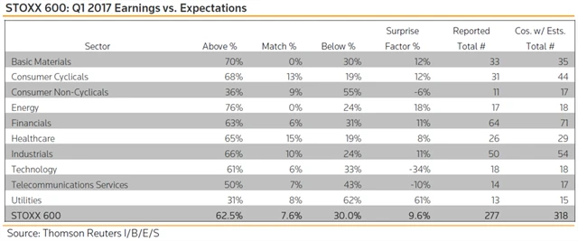 Jaká překvapení přinesly výsledky evropských firem za 1Q2017?