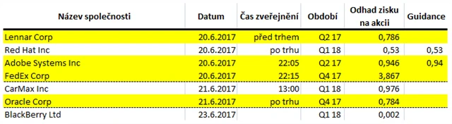 Očekávané výsledky světových firem v týdnu od 19. června (16. 6. 2017)