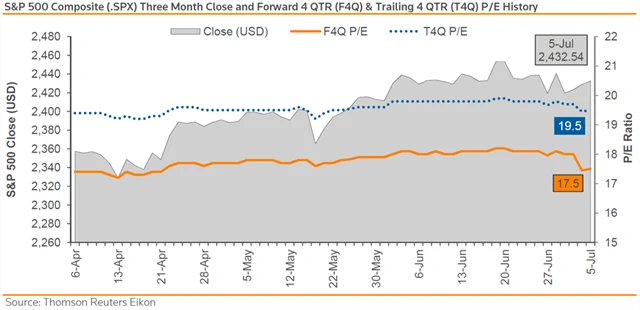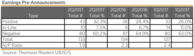 Jak se vyvíjejí odhady růstu či poklesu zisků za 2Q2017?