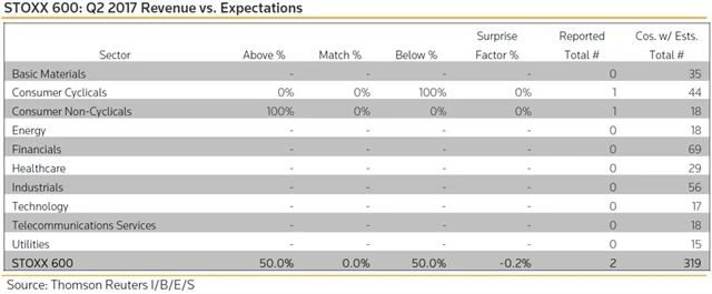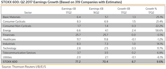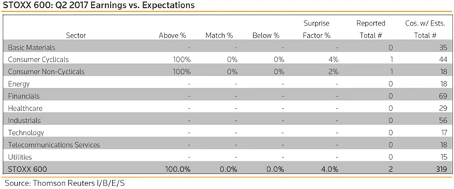 Jaké jsou odhady výsledků evropských firem za 2Q2017?