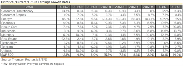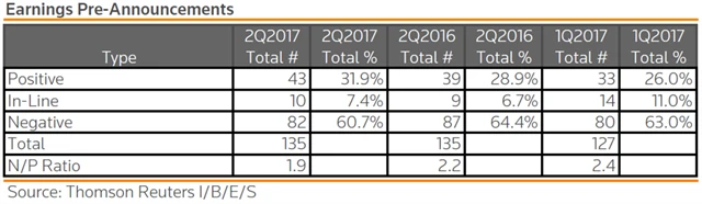 Jak se vyvíjejí odhady růstu či poklesu zisků za 2Q2017?