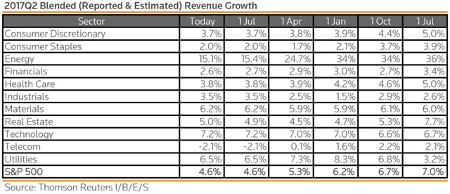 Jak se vyvíjejí odhady růstu či poklesu tržeb za 2Q2017?