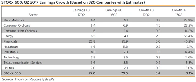Jaké jsou odhady výsledků evropských firem za 2Q2017?