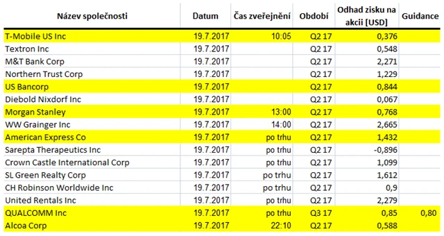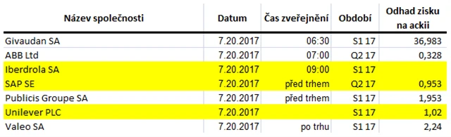 Očekávané výsledky světových firem v týdnu od 17. července (14. 7. 2017)