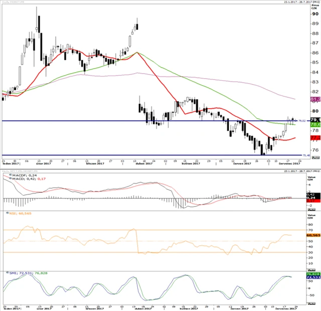 ČEZ, Komerční banka a MONETA Money Bank: České blue chips pohledem technické analýzy (21. 7. 2017)