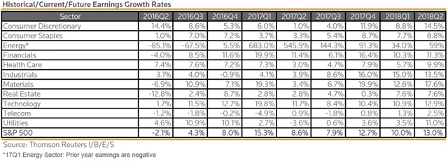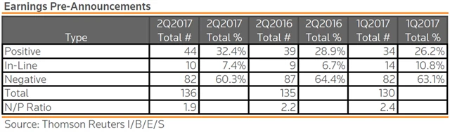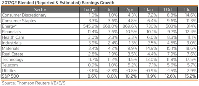 Jak se vyvíjejí odhady růstu či poklesu zisků za 2Q2017?