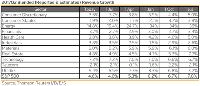 Jak se vyvíjejí odhady růstu či poklesu tržeb za 2Q2017?