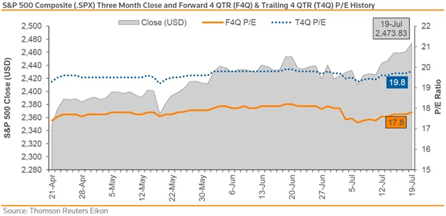 Které světové firmy představí výsledky hospodaření za uplynulý kvartál v týdnu od 24. července a jaké zisky v rámci indexu S&P 500 a od jednotlivých společností očekávají analytici oslovení agenturami Thomson Reuters a Bloomberg? (21. 7. 2017)