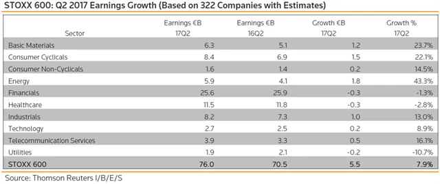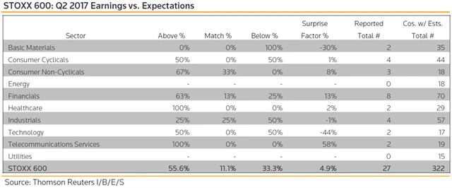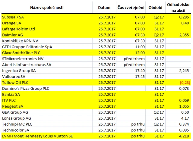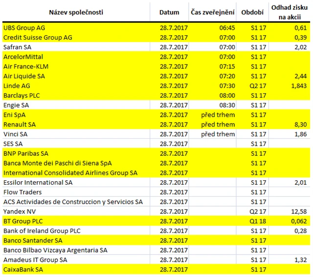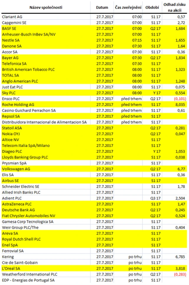 Jaké jsou odhady výsledků evropských firem za 2Q2017?