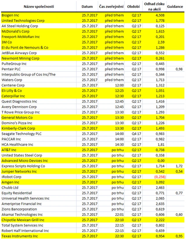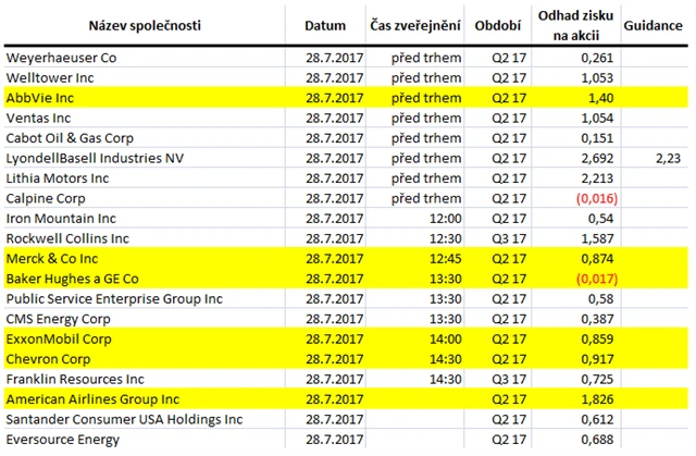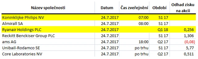 Očekávané výsledky světových firem v týdnu od 24. července (21. 7. 2017)