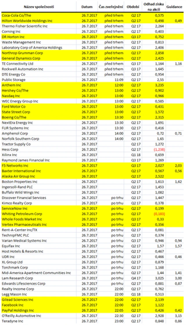 Poznámka: Odhady analytiků jsou aktuální k 19. 7. 2017.