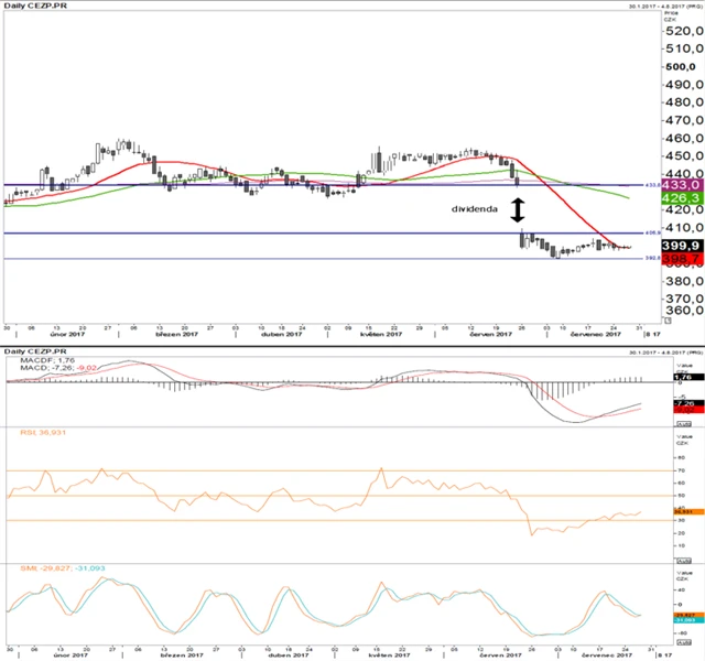 ČEZ, Komerční banka a MONETA Money Bank: České blue chips pohledem technické analýzy (28. 7. 2017)