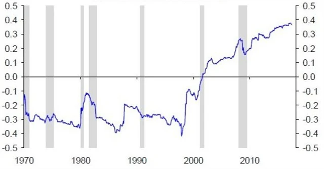 Podle ekonoma z Deutsche Bank Torstena Sløka uvedená negativní korelace mezi úrokovými sazbami a akciovými trhy nefunguje prakticky již od začátku třetího milénia. Jsou spíše pozitivně korelovány, a to více než kdy dříve, což ukazuje graf 10leté klouzavé korelace změny výnosů 10letých státních dluhopisů USA a indexu S&P 500.