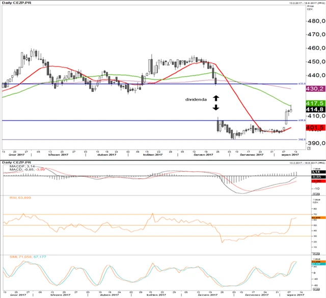 ČEZ, Komerční banka a MONETA Money Bank: České blue chips pohledem technické analýzy (11. 8. 2017)
