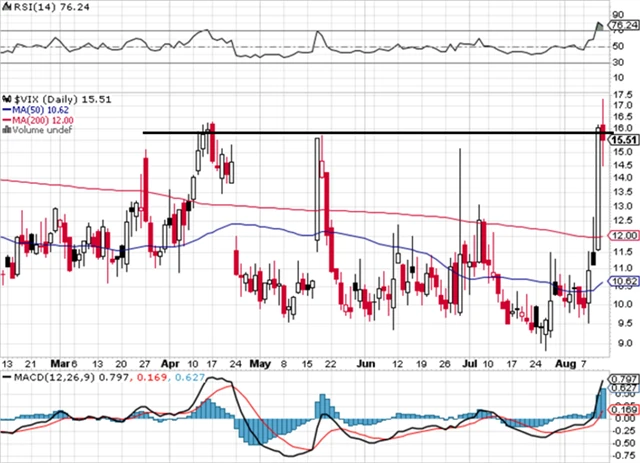 Index volatility VIX má za sebou růst o více než 50 %. Vzhledem k uplynulým třem měsícům je jasné, že nelze hovořit o současných 15 bodech jako o nízké hodnotě. V pátek index intradenně vystoupal nad 17 bodů, pak ale došlo ke zklidnění, na této úrovni ne poprvé.