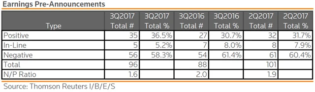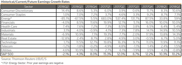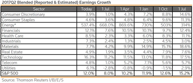Jak se vyvíjejí odhady růstu či poklesu zisků za 2Q2017?