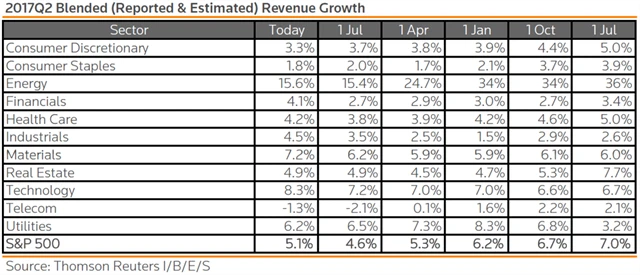 Jak se vyvíjejí odhady růstu či poklesu tržeb za 2Q2017?