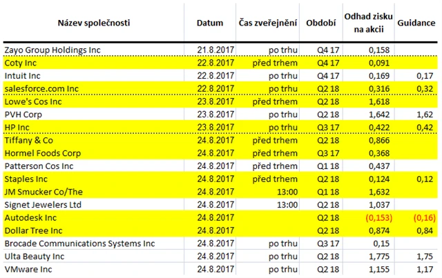 Očekávané výsledky světových firem v týdnu od 21. srpna (18. 8. 2017)