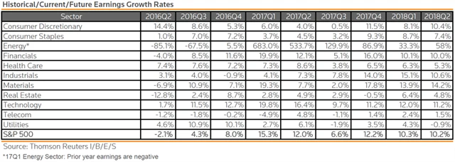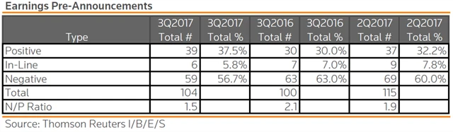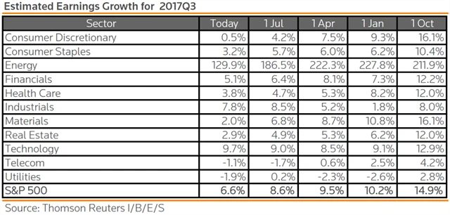 Jak se vyvíjejí odhady růstu či poklesu zisků za 3Q2017?