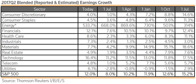 Jak se vyvíjely odhady růstu či poklesu zisků za 2Q2017?