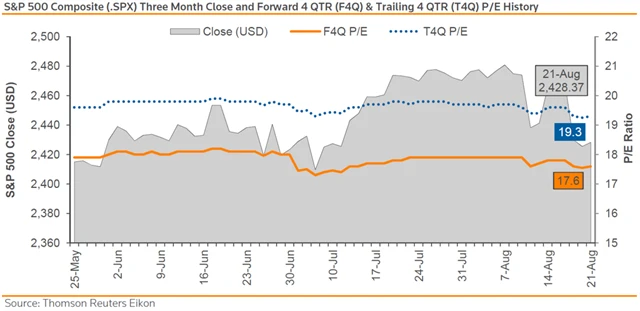 Které světové firmy představí výsledky hospodaření za uplynulý kvartál v týdnu od 28. srpna a jaké zisky v rámci indexu S&P 500 a od jednotlivých společností očekávají analytici oslovení agenturami Thomson Reuters a Bloomberg? (25. 8. 2017)
