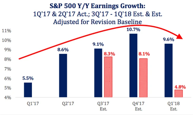 Meziroční růst zisků amerických firem se v prvních dvou kvartálech letošního roku pohyboval nad 10 %. Podle Strategas Research Partners ale investoři zapomínají na to, že důvodem silného růstu byla z velké části slabá srovnávací základna z prvních čtvrtletí roku 2016. A zatímco Wall Street jako celek věří (nebo doufá) v pokračování výrazného posilování ziskovosti amerických společností, experti ze Strategas jsou opatrnější.