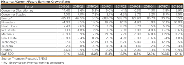 Jak se vyvíjejí odhady růstu či poklesu zisků za 3Q2017?
