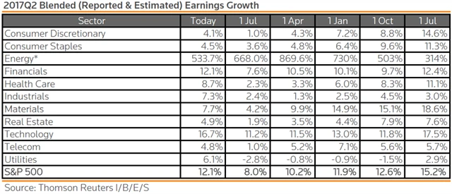 Jak se vyvíjely odhady růstu či poklesu zisků za 2Q2017?