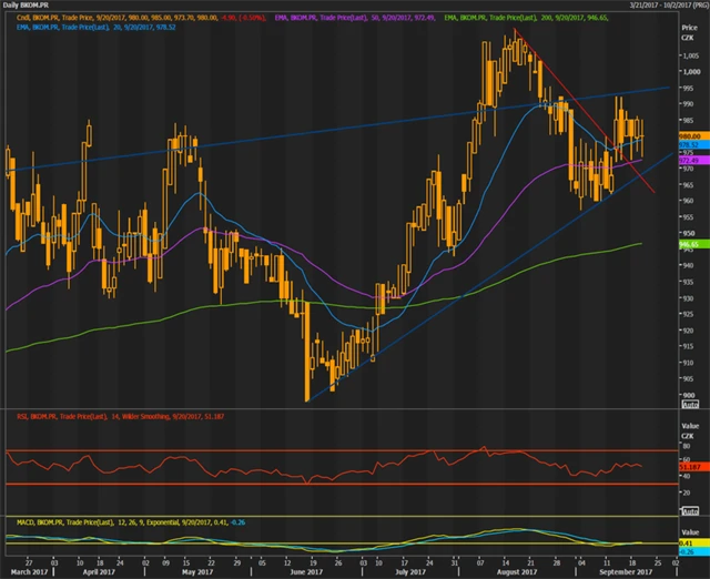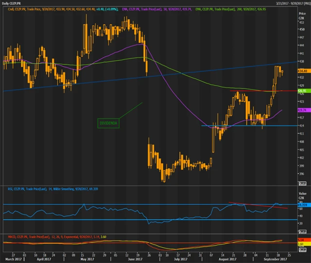 ČEZ, Komerční banka a MONETA Money Bank: České blue chips pohledem technické analýzy (22. 9. 2017)
