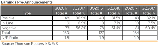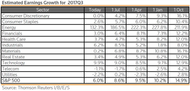 Jak se vyvíjejí odhady růstu či poklesu zisků za 3Q2017?