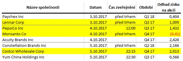 Očekávané výsledky světových firem v týdnu od 2. října (29. 9. 2017)