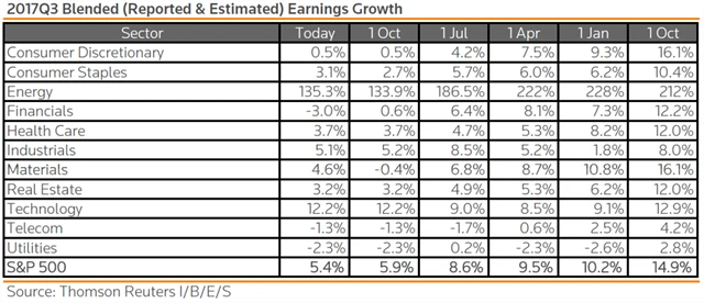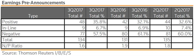Jak se vyvíjejí odhady růstu či poklesu zisků za 3Q2017?