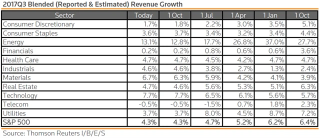 Jak se vyvíjejí odhady růstu či poklesu tržeb za 3Q2017?