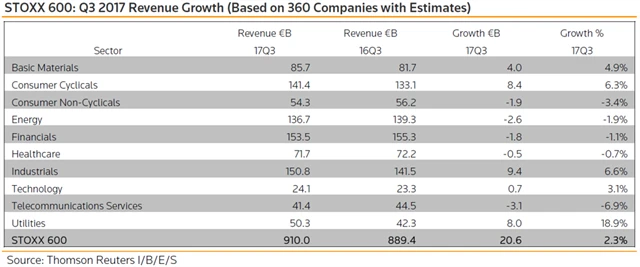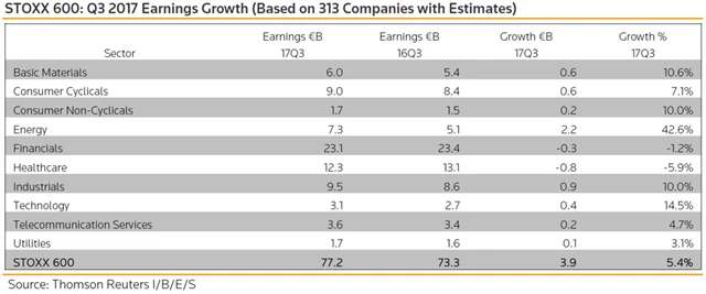 Jaké jsou odhady výsledků evropských firem za 3Q2017?