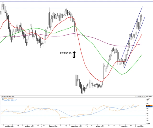 ČEZ, Komerční banka a MONETA Money Bank: České blue chips pohledem technické analýzy (9. 10. 2017)