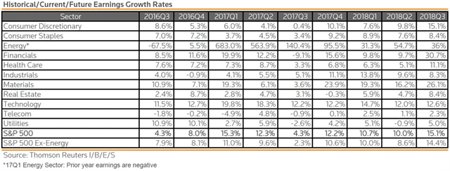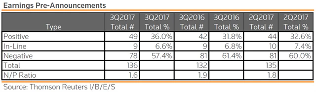Jak se vyvíjejí odhady růstu či poklesu zisků za 3Q2017?