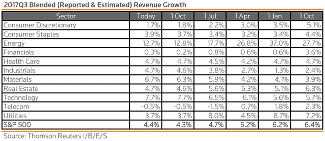Jak se vyvíjejí odhady růstu či poklesu tržeb za 3Q2017?