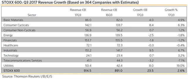 Jaké jsou odhady výsledků evropských firem za 3Q2017?